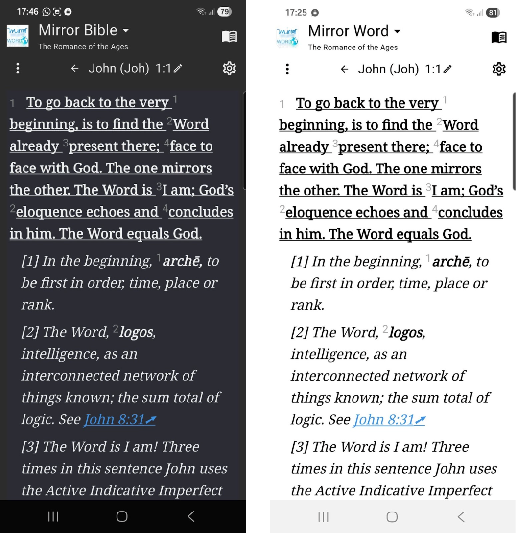 PS. You can preview the web version by opening: https://mirror.bible in your browser. It’s a demo version, containing only a portion of the Letter to the Romans, and the Introduction chapters.